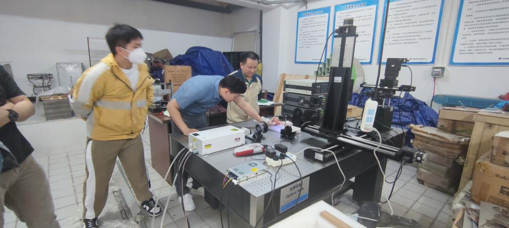 会上,首先冉博士展示了目前传统骨科手术部位、现有技术以及对未来激光消融手术的殷切展望。王洪建教授就目前激光手术可行性进行了分析和论证。双方深刻探讨了激光技术在骨科医学的应用场景,现有手术刀具器与激光消融技术的优劣。之后在机器人与激光智能制造研究所搭建了激光聚焦光学实验平台并进行了验证性实验。