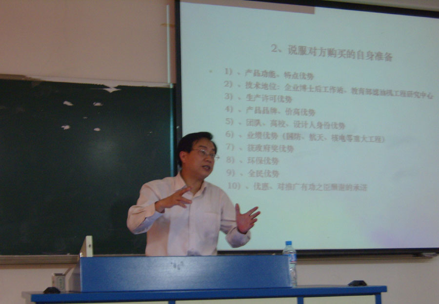张贤明经理系国务院特殊津贴专家,国家长江学者评审专家,重庆市学术技术带头人,长期从事废油资源化技术技术与装备研究,成果颇丰。张经理的讲座以科学发展观为理论基础,强调了科学发展观目的在发展,关键在科学。并报告紧紧联系公司实际,通过大量真实的科研成果案例,向同学们介绍了公司废油资源化装备方面的优势资源,以及公司的特色科技产品。张经理在报告中强调,实践科学发展观难点在于实事求是,解放思想。同学们应以科学发展观为指导解放思想,求真于课堂,求知于社会,应以优势资源来推进社会实践活动,积极投身社会实践,努力培养自身的实际工作能力。