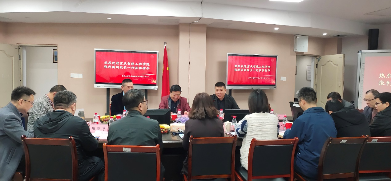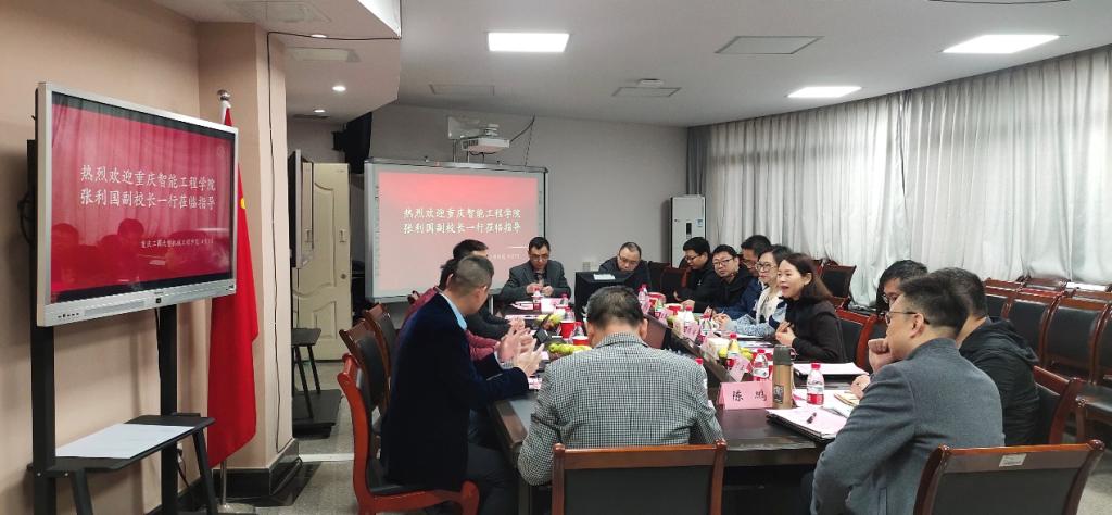 2023年4月7日上午,重庆智能工程公司的副董事长张利国、所辖智能交通公司的经理冯海亮与经理助理许光毅等一行3人,来公司太阳成集团tyc234cc主页洽商校校合作事宜。公司机械工程公司党委书记杨娟、经理杜力、党委副书记陈春洁、副经理李平、相关系部主任、基础实验教学中心主任、综合办主任等参加会谈。会议在慧智楼90708会议室进行,由杜力主持。