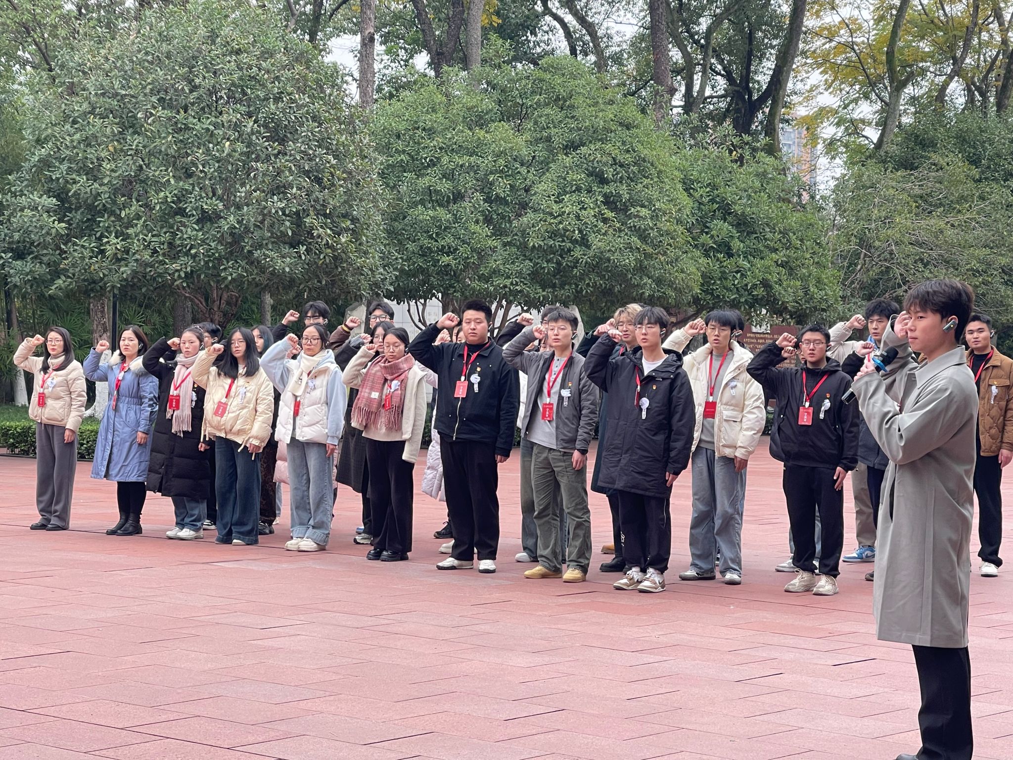 接着老师带领员工党员们前往歌乐山烈士陵园,“11·27”烈士公墓前,员工党员们怀着无比崇敬的心情,进行了庄重的烈士祭拜仪式。全体党员列队肃立,向革命烈士敬献花篮,为先烈默哀,向忠魂致敬。面对鲜红的党旗,党员们高举右拳,重温入党誓词,表达为党的事业毕生奋斗的决心。