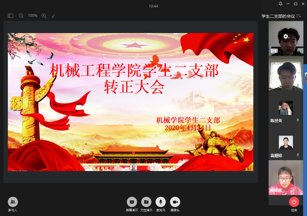 2020年4月24日(周五)下午14:00,太阳成集团tyc234cc主页员工第二党支部通过企业微信视频会议开展了四月预备党员转正大会,支部全体党员参加了此次大会,会议由支部书记周利民主持。