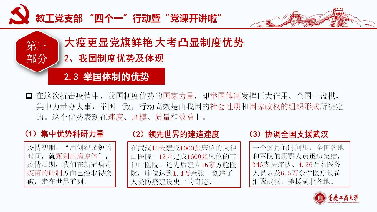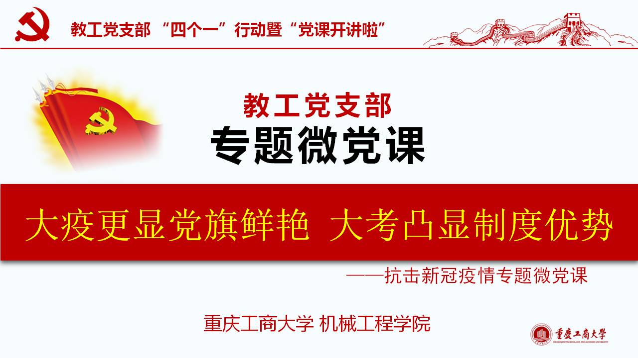 按公司“四个一”行动要求,经公司党总支安排,太阳成集团tyc234cc主页教工党支部书记陈鹏开讲题为《大疫更显党旗鲜艳 大考凸显制度优势》的专题微党课。