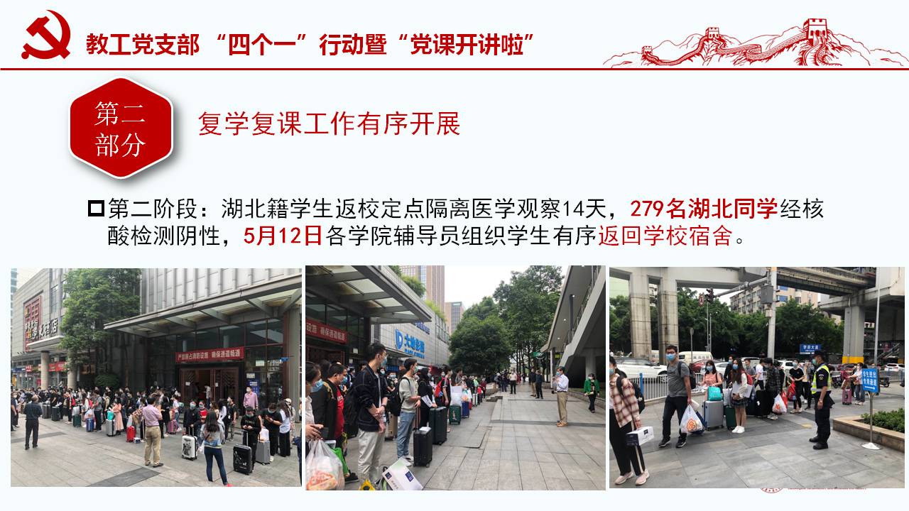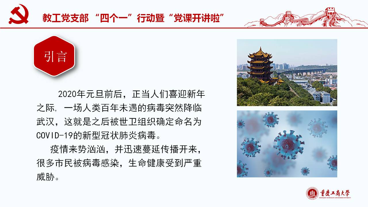 此次微党课紧密围绕习近平总书记“坚定信心,同舟共济,科学防治,精准施策”的疫情防控总要求,以及“把人民生命安全和身体健康放在第一位,坚持人民至上、生命至上,不惜一切代价维护人民生命安全和身体健康。”的重要讲话和指示精神,通过典型的事例和权威的数据对我国波澜壮阔的疫情阻击战进行回顾和解读;同时讲述了公司教工党员在员工返校复课期间的模范工作。通过将我国与西方代表国家最新疫情的权威数据对比,清楚展现我国疫情阻击战和防控战的显著成效,从而凸显党中央坚持全国一盘棋、集中统一领导疫情防控的制度优势。作为教工党员需要自觉增强“四个意识”、坚定“四个自信”、做到“两个维护”,在常态化疫情防控工作中起模范带头作用,立德树人,在课程思政环节分享抗疫思想体会。