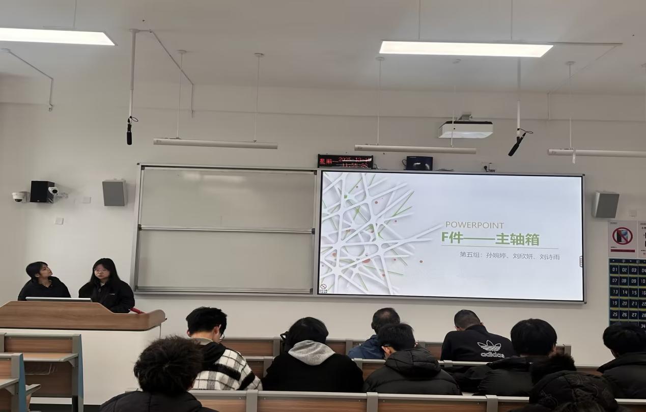 11月30日,作品展示与答辩环节如期举行。现场,各团队依次进行方案汇报,清晰阐述零件的材质分析、工艺路线设计与质量控制措施,并对评委提出的技术细节、生产可行性等问题进行解答。评委团队严格按照产品分析、工艺设计与答辩表现三个维度进行综合评分,既考察了方案的专业性与创新性,也关注其在实际生产中的应用价值。