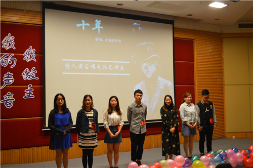 八位歌手合唱《十年》拉开了帷幕。第一轮八进六比赛,选手依次上场演唱,温柔深沉的《遗失的美好》深情投入的《说谎》,桀骜不驯的《被驯服的象》,清澈细腻的《红颜旧》,动听的歌声回荡在7200。选手们纵情高歌,观众掌声不断。之后评委老师对选手进行点评,校园十佳歌手董思奇为大家演唱助兴,掀起全场高潮。第二轮帮帮唱环节,两两对战。世上最遥远的距离《飞鸟和鱼》,耳熟能详的《小酒窝》,并不平凡的《平凡之路》,进入第三轮比赛。中间穿插的有奖竞猜环节,为比赛增添许多欢乐最终谭舒予夺得冠军。徐睿绮赢得亚军,陆晓艺赢得季军。最后,机械工程公司党总支书记刘洋杜力经理为冠亚军选手颁奖并合影留念。