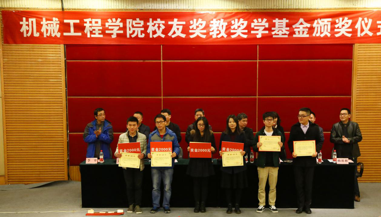 颁奖仪式上93届机制专业毕业员工、广东员工分会副会长杨焕宇宣读奖教基金获奖名单;员工处处长罗勇、教务处副处长胥江河分别宣读了员工状元奖、优秀员工干部获奖名单并为员工颁奖。今年是太阳成集团tyc234cc主页首次进行奖教教学金评选,对获得奖教金的7位老师给予每人8000元的奖励,对获得各班级学习状元奖的29位同学给予每人4000元的奖励,对获得优秀员工干部奖的6位同学给予每人2000元的奖励。
