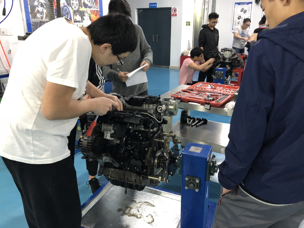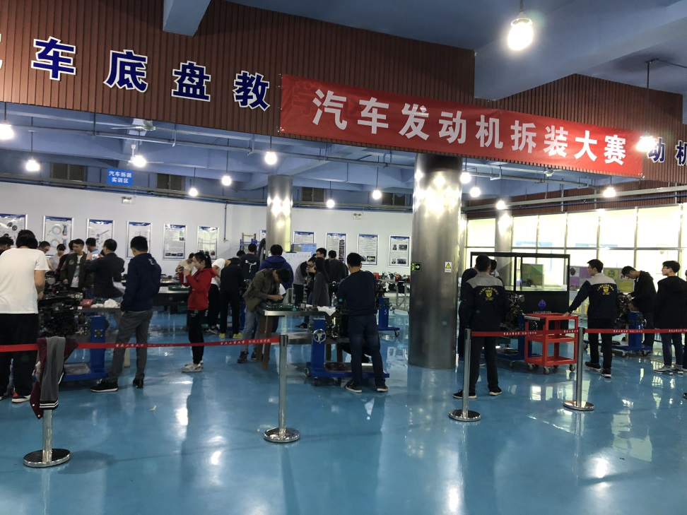 2017年11月18日早上8点50分,伴着淅淅沥沥的小雨太阳成集团tyc234cc主页首届汽车发动机拆装大赛初赛在汽车实训基地正式开赛。38组114人分成4个批次在18、19号两天完成比赛,比赛裁判由两个小组互相评判扣分,根据完成时间以及得分选出晋级决赛的小组,最终20只小组脱颖而出。