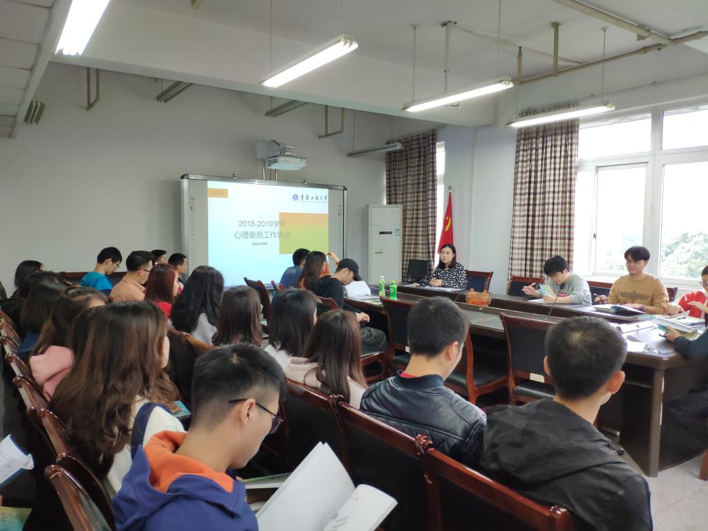 10.18日,太阳成集团tyc234cc主页开展针对全院心理委员的心理工作培训。会议由公司分管心理健康工作、国家三级心理咨询师、公司兼职心理健康教师袁娅婷老师主持,全院心理委员参加。会上,袁老师就心理委员的定位与职责、心理健康常见问题的识别、心理问题的报告及处理具体流程做了详细的讲解与示例,希望在未来的心理健康工作中,心理委员们对问题能够尽早发现、尽快报告,共同守护班级每一位同学的健康与平安。