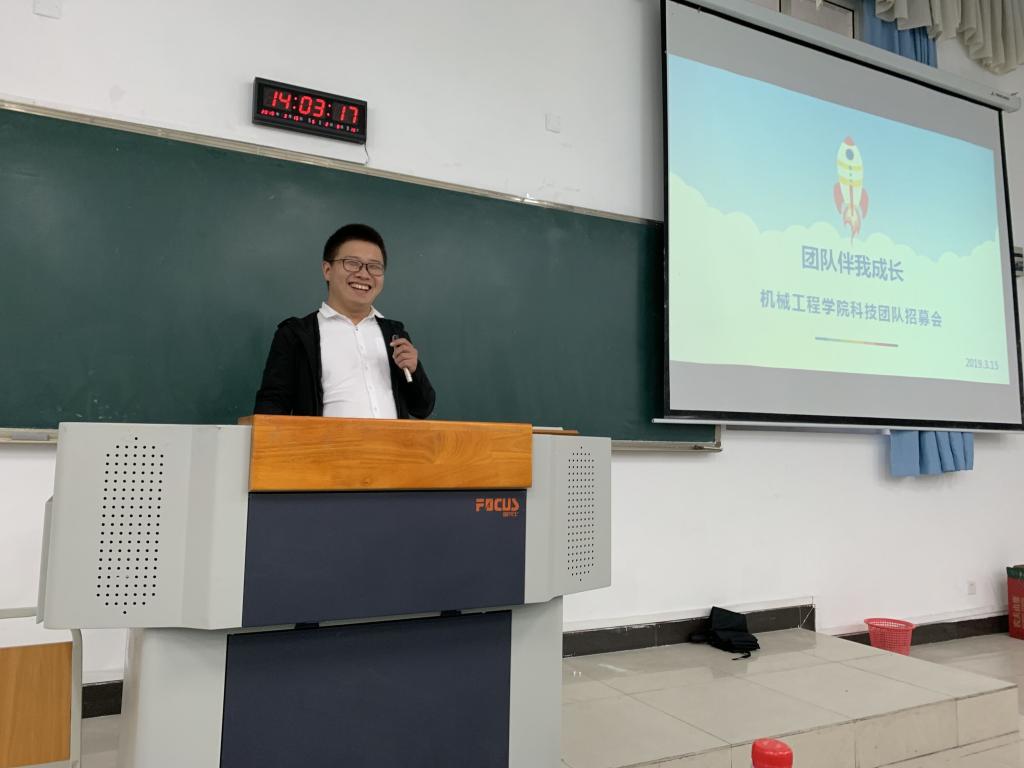 特别值得一提的是,本次招募会将“机械师”团队五位创始人再次集聚到了一起,共同见证“机械师”团队的发展与壮大。“机械师”团队另一创始人之一、现就读于四川大学空天科学与工程公司航空宇航科学与技术专业、以第一名的成绩考入并获得全额奖学金的罗冲同学,向同学们讲述了加入“机械师”团队为他的老员工活、学习、工作以及考研带来的帮助,并以一个研究者的角度向新生们简要介绍了机械行业目前的发展与研究的方向,号召同学们要将对专业全心的热爱和饱满的热情投入到大学的学习当中,努力在专业学习中有所突破、有所收获。