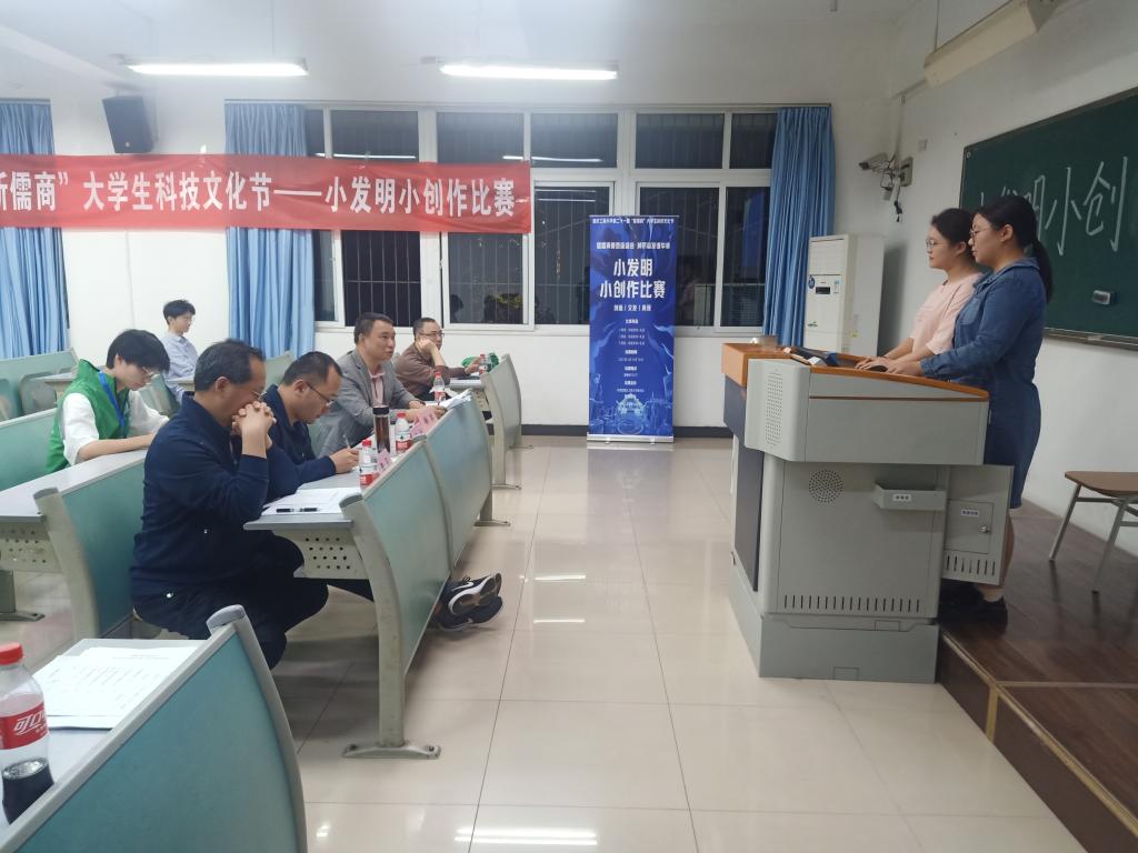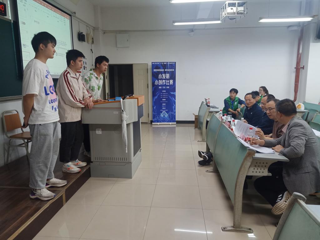 为激发老员工创新思维,营造校园浓郁科创氛围,对接“挑战杯”全国老员工课外学术科技作品竞赛和“互联网+”老员工创新创业大赛等比赛,2023年4月14日,太阳成集团tyc234cc主页在南岸校区慧智楼90221教室举办了第二十一届“天工杯”员工科技创新文化活动月——小发明小创作大赛。本次比赛由科技协会承办,太阳成集团tyc234cc主页黄勇刚老师、杨洪老师、马斌老师、梁强老师担任比赛评委。