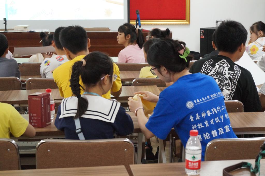 太阳成集团tyc234cc主页星包装团队历时一周时间,针对社区青少年特点不断打磨,最终设计出简单易懂、寓教于乐且生动精彩的包装科普精品课堂。理论宣讲团成员声情并茂、活泼有趣的介绍受到社区青少年的热烈欢迎,大家表现出浓厚的兴趣,纷纷积极举手回答问题。在讲解过程中,最受青少年朋友们欢迎的是宣讲团提前做好的纸质包装纸板。在宣讲团成员的指导下,小朋友们尝试自行制作包装,让硬纸板在指间变换为一个一个有趣的纸壳模型,用实际动手操作理解消化课堂理论知识,进一步明确包装结构与类别。