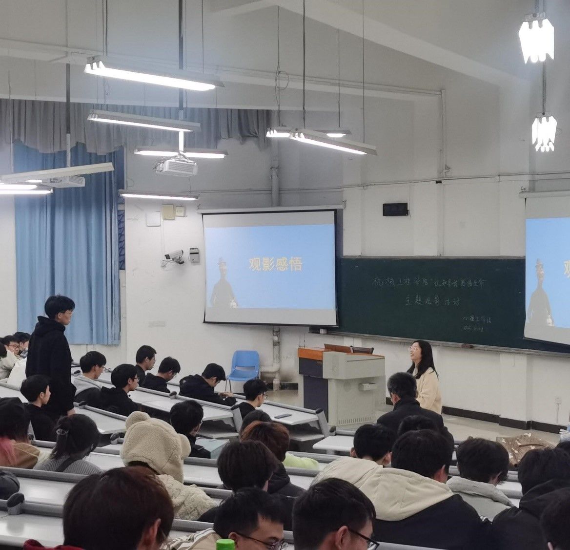 活动伊始,陈春洁向大家阐述了本次活动的重要意义,并引导同学们在面对心理压力或困惑时可以通过自我调节、老师疏导、心理咨询等方式有效解决。“身体发肤,受之父母”,希望同学们能够通过此次观影活动领悟生命的本质,热爱生活,珍爱生命。