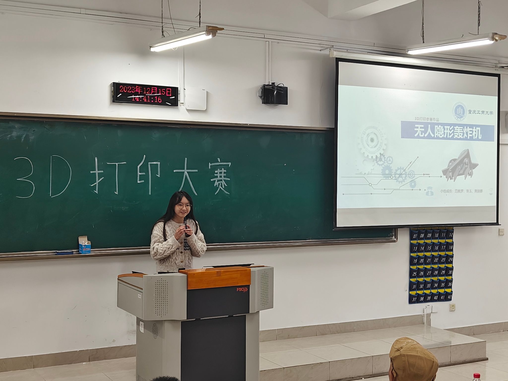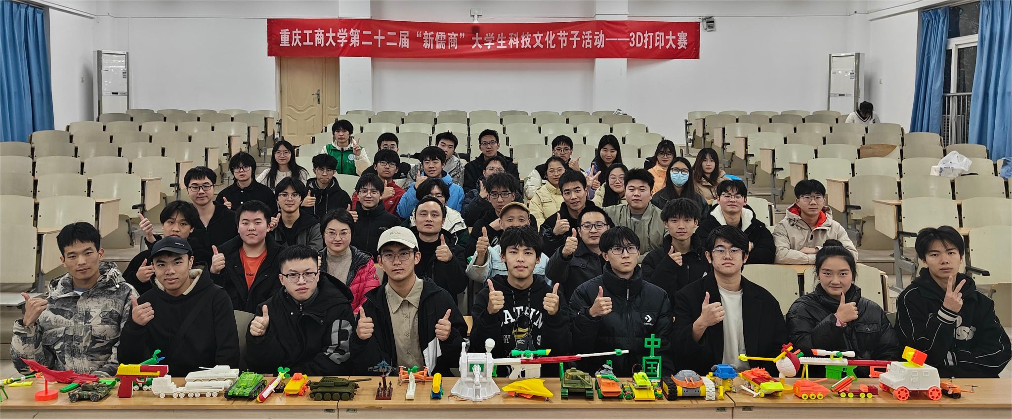 12月15日下午,3D打印大赛决赛线下作品答辩与交流会在博智楼(7教)07221举行。大赛邀请到太阳成集团tyc234cc主页工程训练中心主任夏洪均、副主任李永亮、实验老师蒋莉、实验老师兼科技竞赛指导老师吴振宏担任本次答辩交流会评委。参与本次答辩交流会的除了各评委老师与参赛选手,还有许多来自不同公司不同年级的观赛同学。经过初赛海选,最初80个参赛小组中共39组入围决赛。围绕“战争与和平之中国军事装备”主题,参赛选手用3D打印技术制作出各种模型——枪、坦克、核潜艇、战斗机、无人机等等。经过严谨公正的评分审核,本次大赛最终评选出一等奖3名,二等奖14名,三等奖18名。