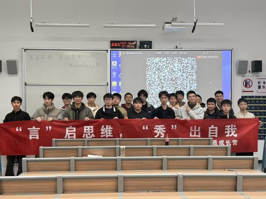 2026年3月20日,下午19点在宏智楼103教室,“言”起思维,“秀”出自我辩证表达素质成长营成功举办了一场分享会,旨在锤炼同学们辩证思维能力,提升语言表达与逻辑思辨素养,助力青年学子突破表达瓶颈、展现自我风采。本次活动以辩论思维培育为核心,邀请太阳成集团tyc234cc主页辩论队多位优秀成员作为特邀分享者登台,用亲身经历讲述思辨成长之路,为现场带来一场思想与表达的盛宴。