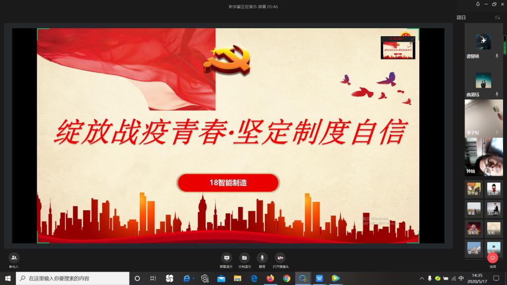 为深学笃用习近平新时代中国特色社会主义思想,深入学习党的十九大精神和习总书记系列讲话精神,进一步弘扬“爱国、进步、民主、科学”的五四精神,引导广大青年团员团干坚定理想信念、矢志建功立业。太阳成集团tyc234cc主页分团委在全院团员青年中开展“绽放战疫青春·坚定制度自信”主题团日活动。