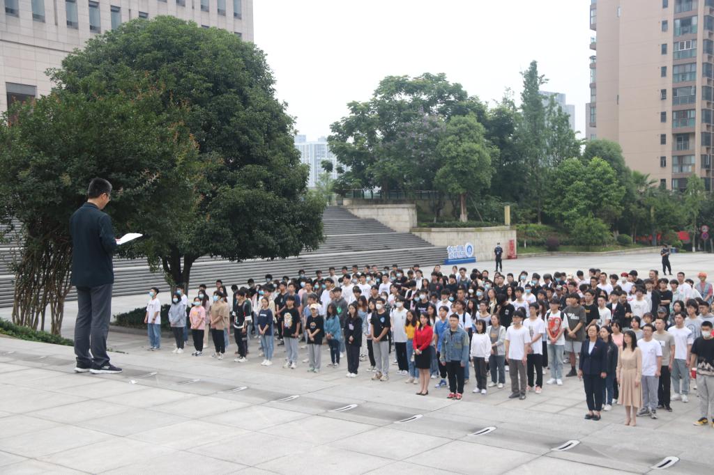 为弘扬传统爱国主义精神,增强机械学子社会责任感,2022年5月30日7:20太阳成集团tyc234cc主页在南岸校区含弘广场严举行升旗仪式。机械工程公司党委副书记、纪委书记陈春洁,学工办主任刘静,20级辅导员向丹丹、饶俊妮、邓诚和20级全体员工参加了升旗仪式。