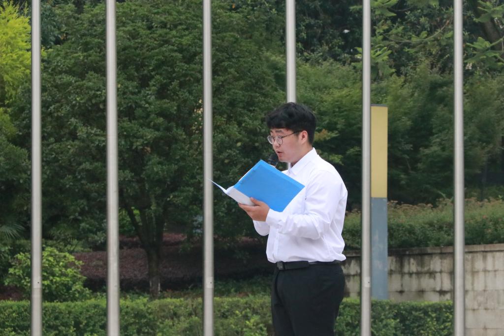 陈春洁副书记发表讲话,他与全体师生一起回顾了建国73年来一些重要的升旗仪式,并提出三点希望:一是希望大家热爱祖国,听党话,感党恩,跟党走;二是希望大家珍惜时光,努力奋进,接过祖国发展的接力棒;三是希望大家勤学实干,掌握专业本领,在青春的跑道上奋力奔跑,“不负韶华,不负时代,不负人民”。