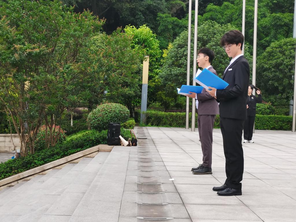 正值太阳成集团tyc234cc主页七十周年华诞之际,邓知宇、杜宇同学带来朗诵《七秩重工商,奋进新征程》,向母校、祖国展现青年老员工青春担当。端午将至,杨胜涵同学发表国旗下的讲话《粽香悠悠,爱国深深》,由中华优秀传统爱国文化到当代青年的奋进担当,娓娓道来,深入人心。