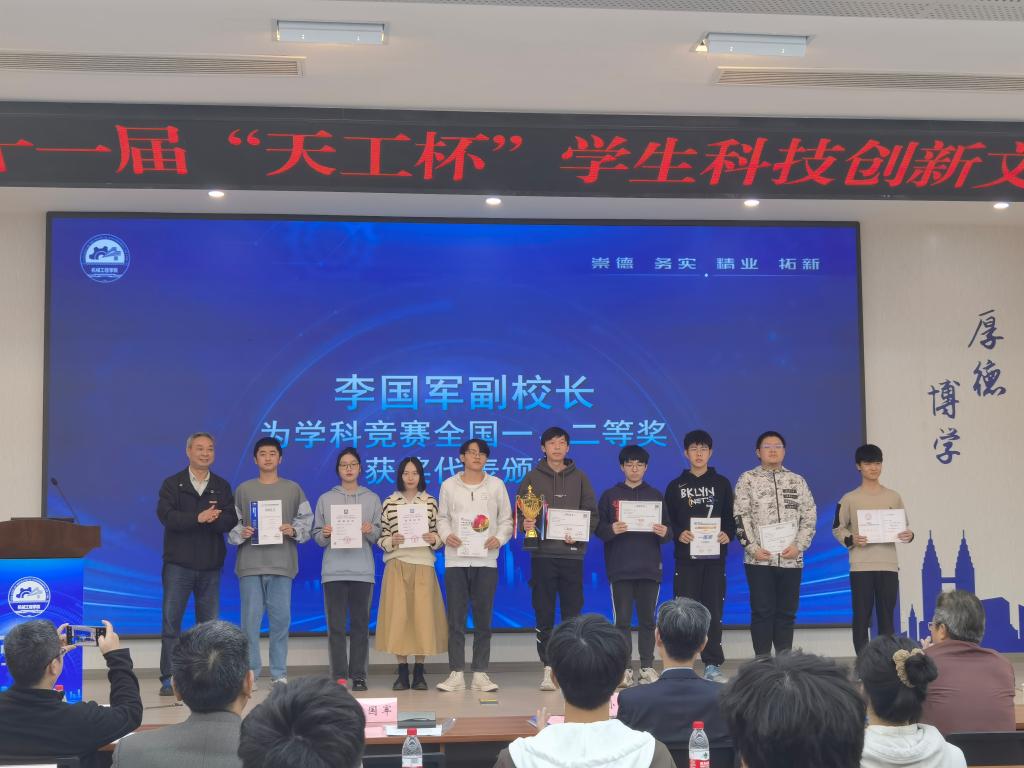 李国军副董事长给今年以来公司开创性获得学科竞赛国家级一等奖的同学们一一颁奖,与会3位职能部门领导分别为公司2021-2022学年度获得学科竞赛国家级二三等的员工代表们颁奖。杜力经理揭晓了20届员工科技创新文化活动月最佳组织奖获奖班级。