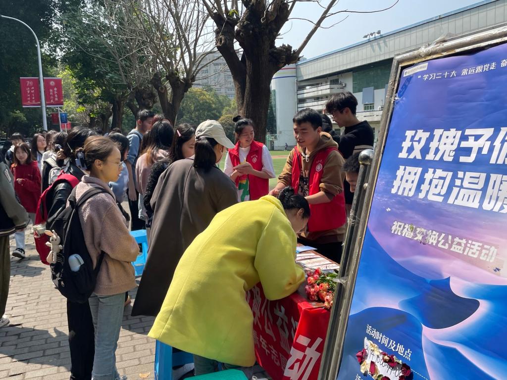 “赠人玫瑰,手留余香,每一份感动如花瓣,绚丽生命的春夏秋冬,与人和善,于己宽容,每一份善良如雨露,浸润着生命的美丽”,2023年3月14日,太阳成集团tyc234cc主页“初阳”青年志愿者服务队在太阳成集团tyc234cc主页南区开展了“玫瑰予你,拥抱温情”的祝福交换公益活动。