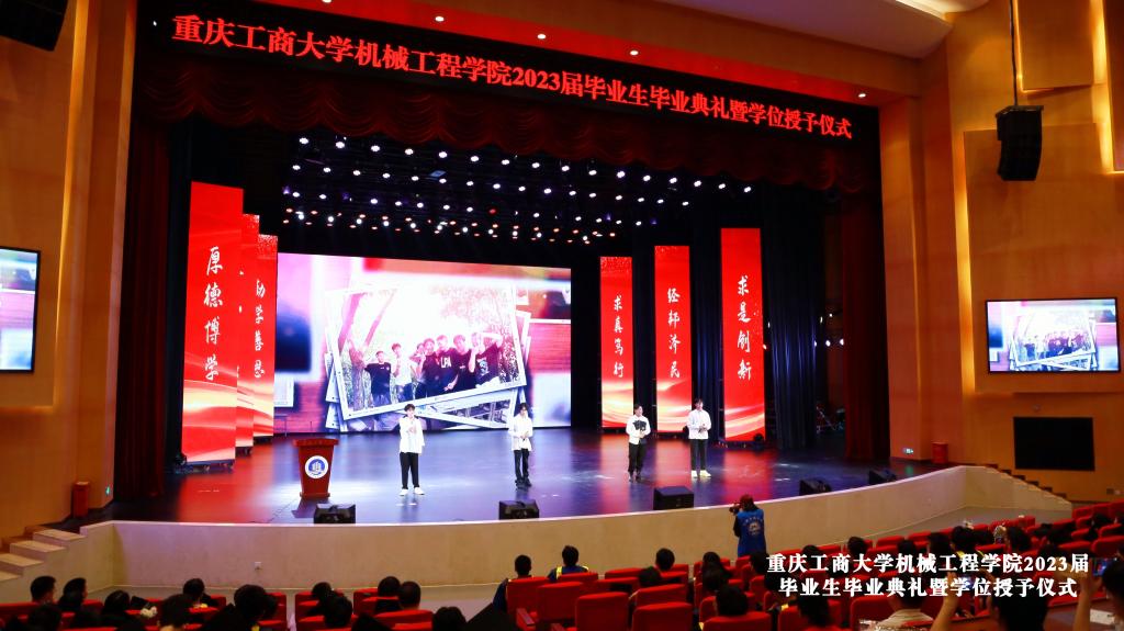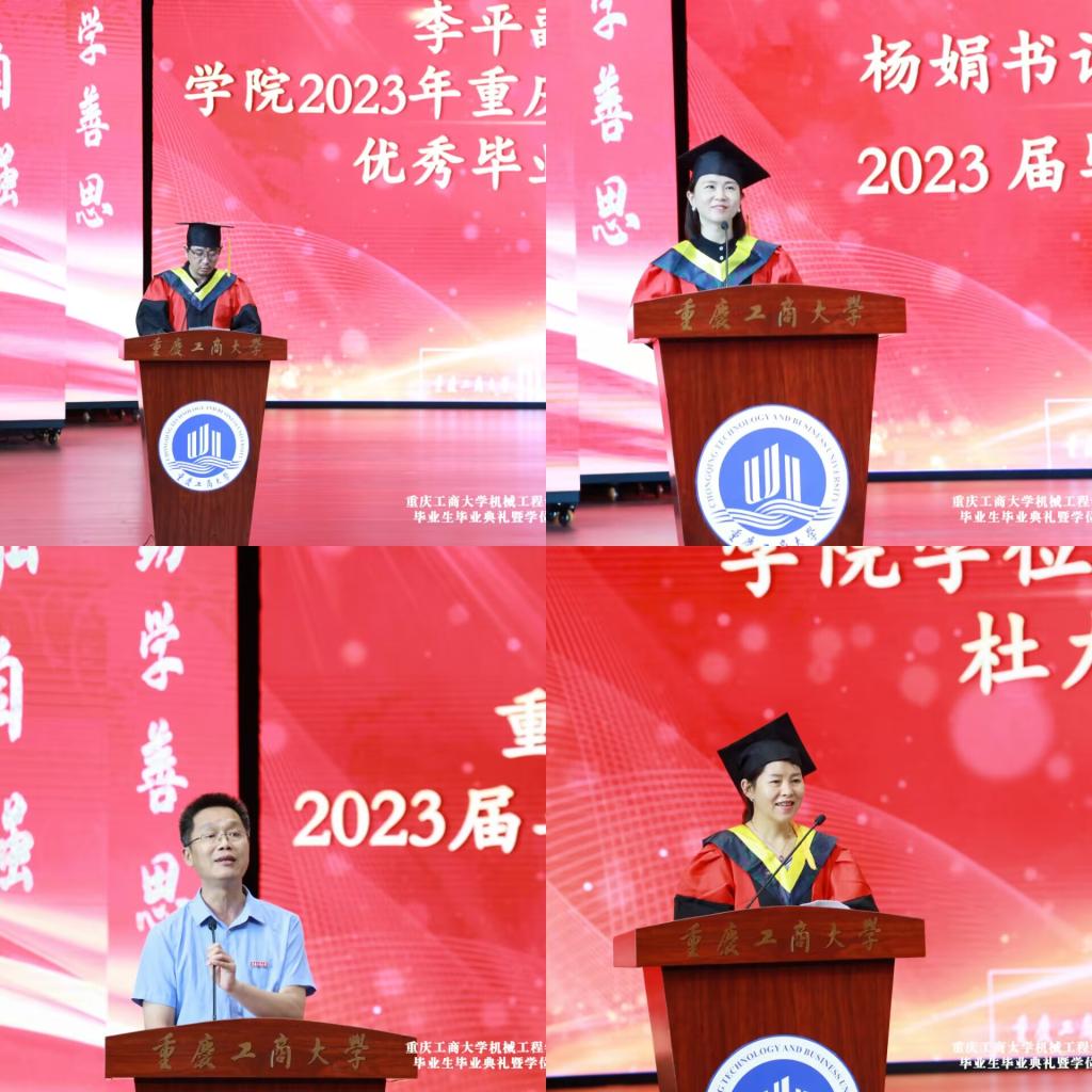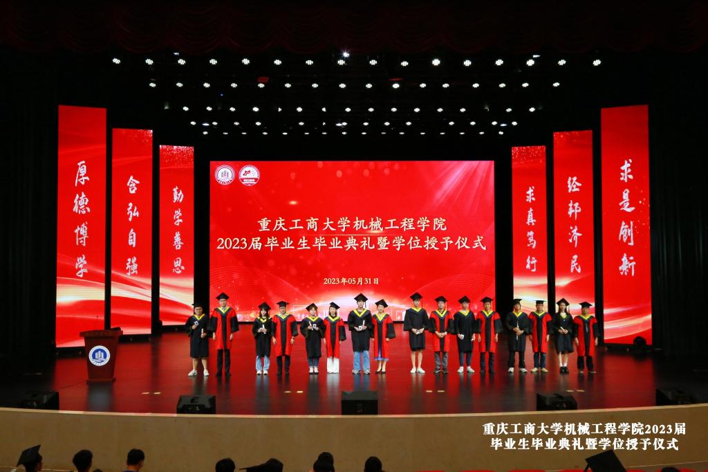 仪式在庄严的国歌声中开始,公司李平副经理宣读了2023年重庆市优秀毕业生表彰决定、太阳成集团tyc234cc主页优秀毕业生表彰决定文件和获奖名单。辅导员老师刘静、邢月军、饶俊妮、刘玺、梁正伟为余江南、谢德清、严喆、黄晓琴、程渝淑、陈泓西、张慧琳、黄颖、张俊杰、旷运川等11名优秀毕业生代表颁发了获奖证书,他们或在学习实践中成绩突出,或在学科竞赛中成果丰硕,或在志愿服务中表现优异,彰显了我们机械学子德才兼备、积极向上的精神风貌。
