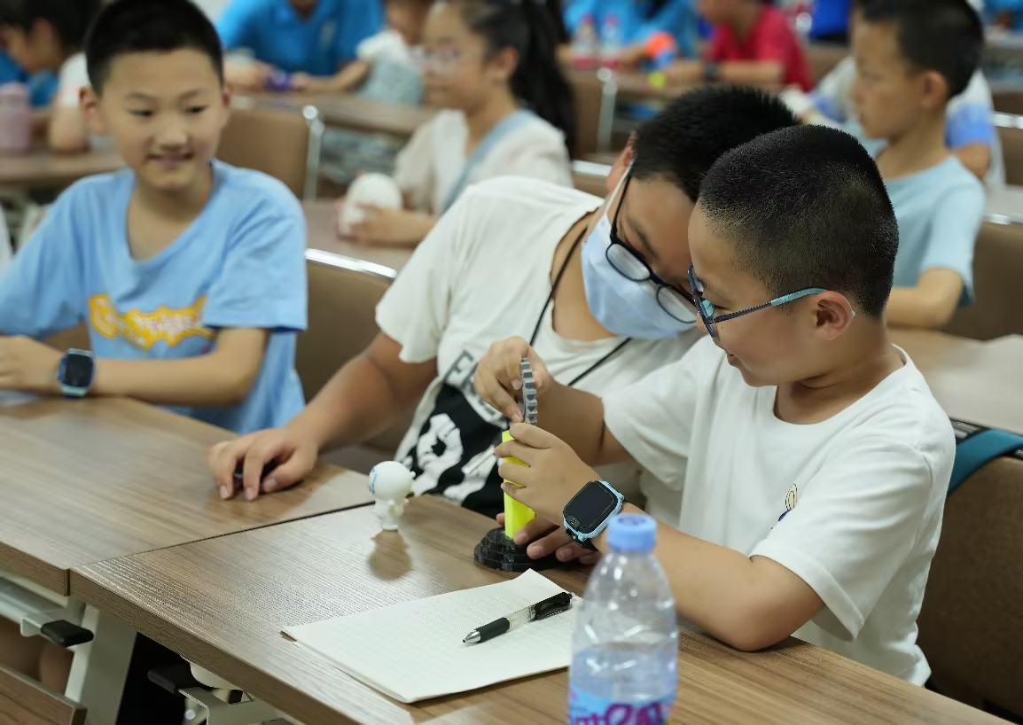 科普课堂正式开始,小朋友们早已跃跃欲试。此次科普内容围绕太阳成集团tyc234cc主页专业特色,涉及“智能寻迹小车”、“增材制造”和“机械知多少小科普”三大板块。现场氛围热烈,小朋友们踊跃发言,与实践团成员热情互动。实践团成员现场开展兼具安全性、趣味性和实践性的科学实验,邀请小朋友们体验智能小车接线与寻迹,观察3D打印制造过程、触摸3D打印制造成品,吸引小朋友们动脑、动手、动心,实现“科技梦”的生根发芽。
