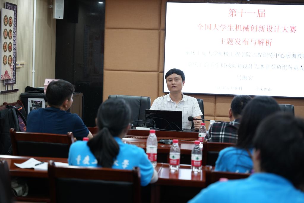 指导教师吴振宏对机械创新设计大赛展开简要讲解,强调第十一届全国机械创新设计大赛的主题为机械创新推进农业现代化、自然和谐迈向仿生新高度,帮助参赛选手进一步明确作品的设计方向。交流会上,团队成员们积极阐述项目设计思路,指导老师们也不吝赐教,对团队的设计展开耐心解读与专业指导,从多个维度出发提出修改意见。
