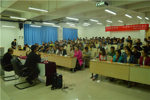 此次活动针对员工干部如何自我修炼、如何管理好团队、如何利用自身优势成长这三个问题分环节讲述。在每个环节,员工分干部分别提出“作为员工干部怎样在班级建立威信”,“社团怎样才能拉取更多的赞助”,“如何在企业中脱颖而出”等问题,曹亮老师和唐海陵老师就这些问题一一作出解答,两位老师语言幽默风趣、深刻且易懂。接着,擅长大学职业规划的唐老师将制作简历的经验和秘诀分享给大家,重点指出老员工应对自己的职业定位。活动最后,老师提出要勇敢自信地去追求梦想、勇于拼搏实现理想,赢得同学们的阵阵掌声。