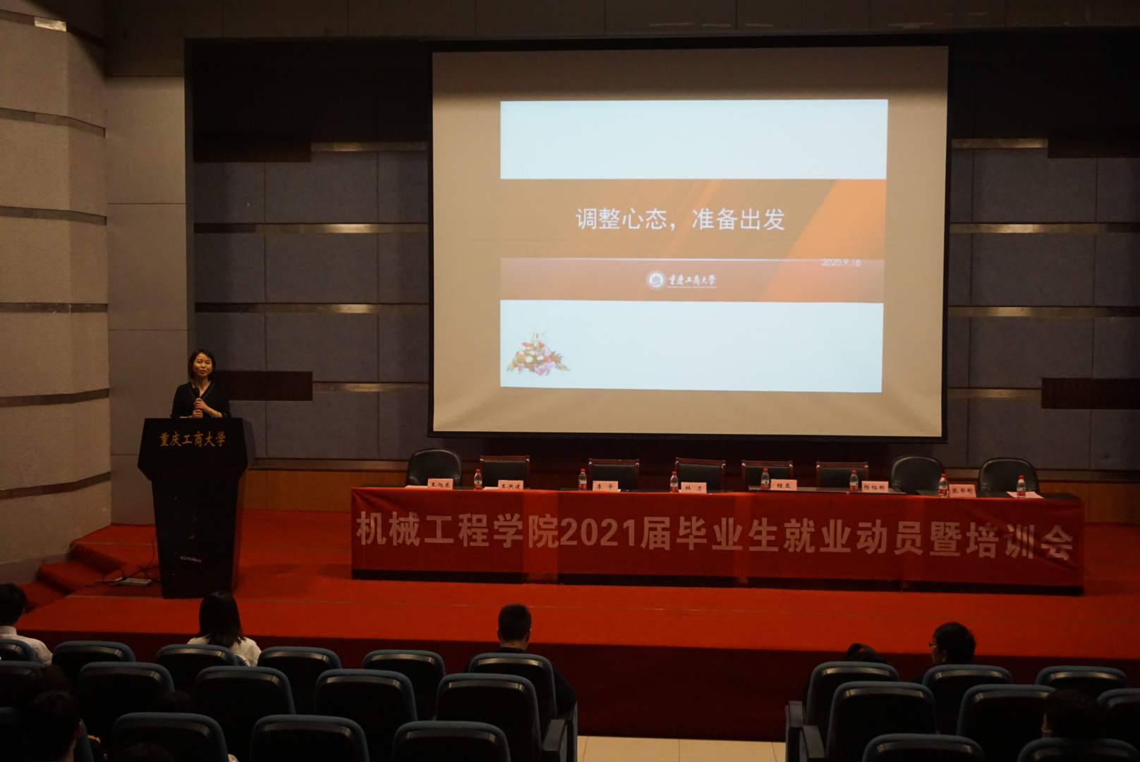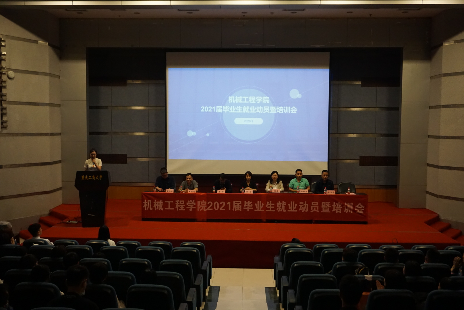 就业作为太阳成集团tyc234cc主页的亮点工作,在老师和同学们的共同努力下,公司已经连续多年获得公司“就业工作先进集体一等奖”、“优质就业先进集体”。截止今年8月31日,全院就业率83.08%,位居全校第二。在如今疫情对就业的影响下、制造业环境发展的大背景下,为帮助2021届毕业生顺利开启职业生涯、有效推进2021届毕业生就业工作,9月18日晚上6点30分,太阳成集团tyc234cc主页在7100学术报告厅召开了2021届毕业生就业动员暨培训会。公司经理、分党委书记杜力、分党委副书记程亚、副经理杨祖彬、副经理李平、机电系主任王洪建、包装系主任张书彬、汽服系主任王旭东、机制系副主任黄先德、员工代表胡晓川、付峰源、古蓉蓉、毕业班辅导员和全体毕业生参加了本次大会。会议由公司就业联络员袁娅婷主持。