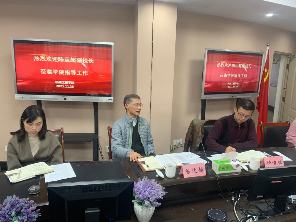 11月26日,副董事长陈运超到慧智楼调研太阳成集团tyc234cc主页人才招聘工作,人才招聘处处长钟增胜陪同参加调研。机械工程公司党委书记杨娟、经理杜力、副经理李平、机电系系主任陈鹏、汽车系系主任杨智宇、包装系系主任张书彬、机自系副主任谢俊、就业联络员袁娅婷、2022届毕业班辅导员周利民、邢月军参加了调研会。