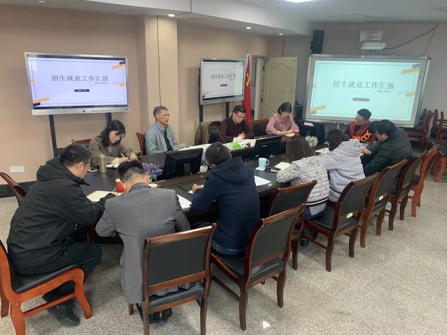 杨娟从“实”、“准”、“高”三个方面简要汇报了公司未来就业工作方向。动员全员力量,挖掘就业工作潜能与资源;深入了解员工需求,精准帮扶就业困难员工;针对不同年级开展素质拓展活动补齐工科同学共性短板,期望在就业质量、数量上能有所提升。副经理李平、各系主任、就业联络员、毕业班辅导员也都结合工作实际,分析汇报了各专业就业形势的动态变化以及就业促进措施。