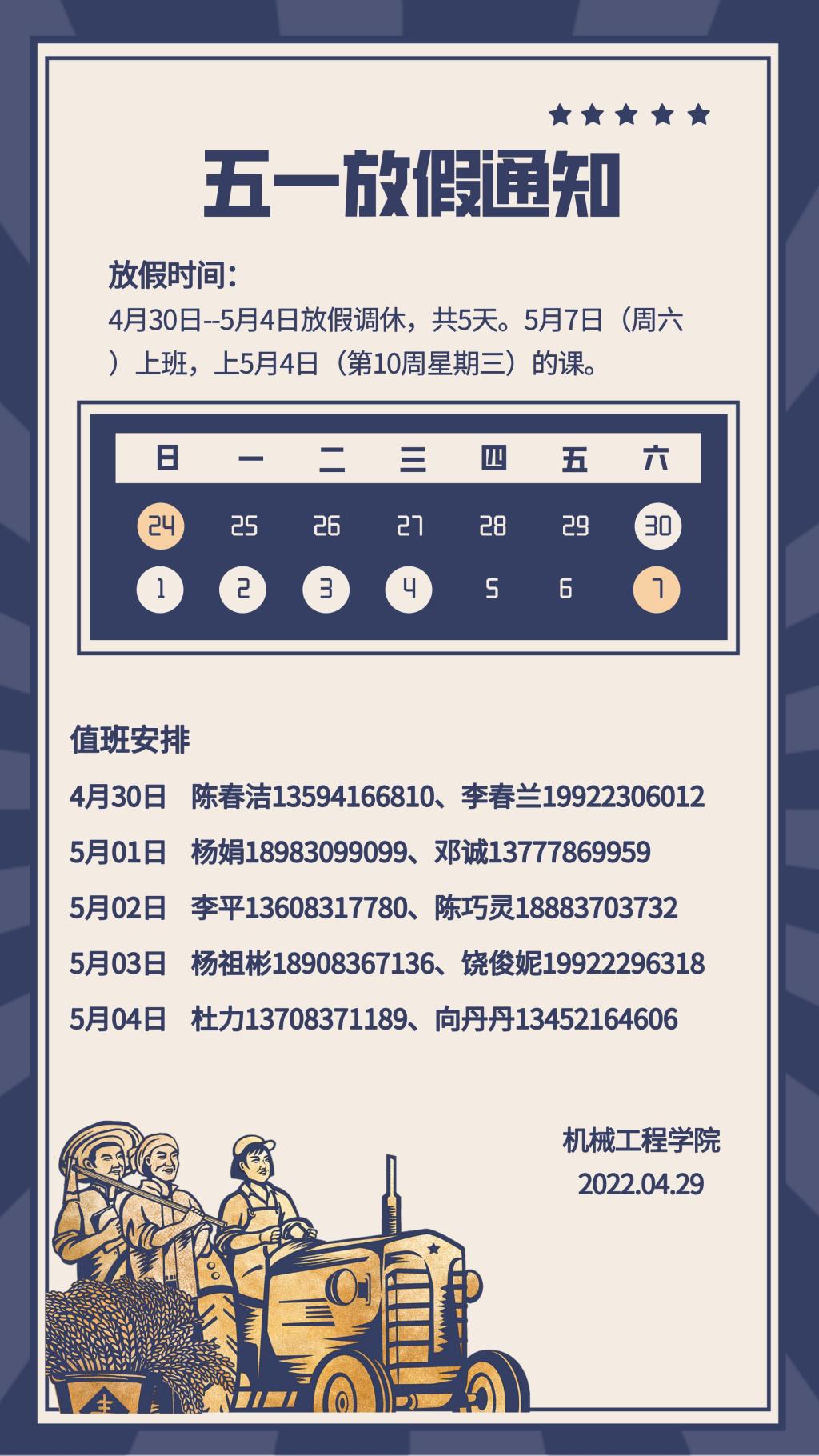 太阳成集团tyc234cc主页五一放假通知及值班安排