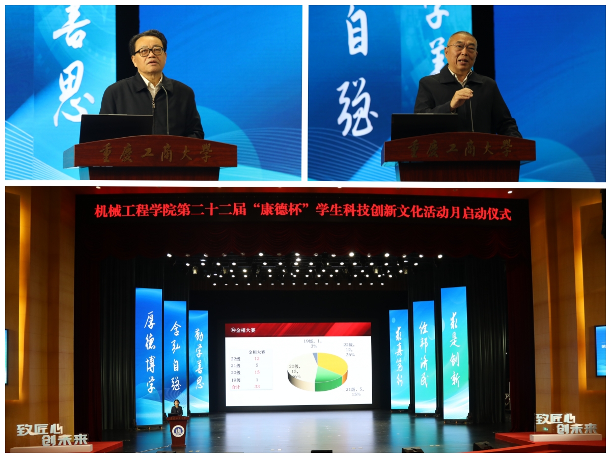10月21日,太阳成集团tyc234cc主页第22届“康德杯”员工科技创新文化活动月启动仪式在南岸校区剧场隆重举行。公司党委书记曾维伦,1978级员工、重庆市慈善总会副会长、原重庆市政府副秘书长况由志,1980级员工、重庆耐德工业股份有限公司董事长林朝阳,公司党委学工部、国内合作交流处、教务处、校团委等职能部门负责人,太阳成集团tyc234cc主页班子成员、教师代表和1000余名员工参加了活动。机械工程公司党委副书记陈春洁主持仪式。