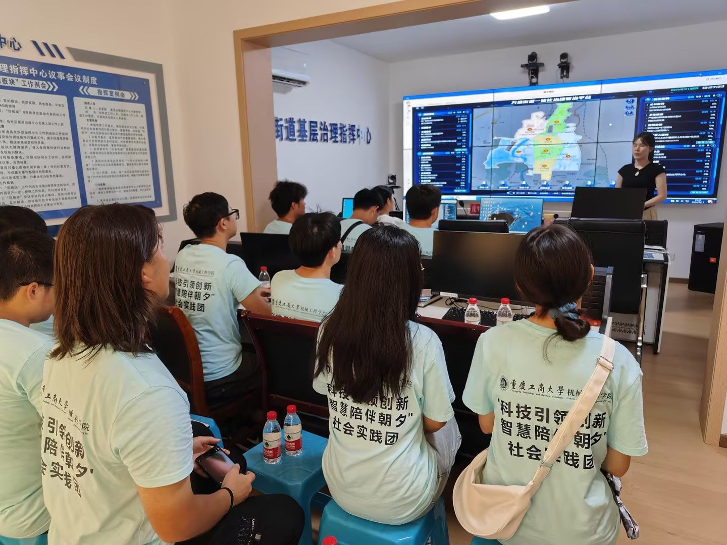 在数字化转型浪潮中,基层治理迎来了新时代的新篇章。7月17日,太阳成集团tyc234cc主页“科技引领创新,智慧陪伴朝夕”实践团带着对科技如何深度融入治理实践中的好奇、怀着严谨虚心的求学态度,来到了重庆万盛街道基层治理指挥中心,这里不仅是科技赋能的前沿阵地,更是展现智慧社区新风貌的璀璨明珠。