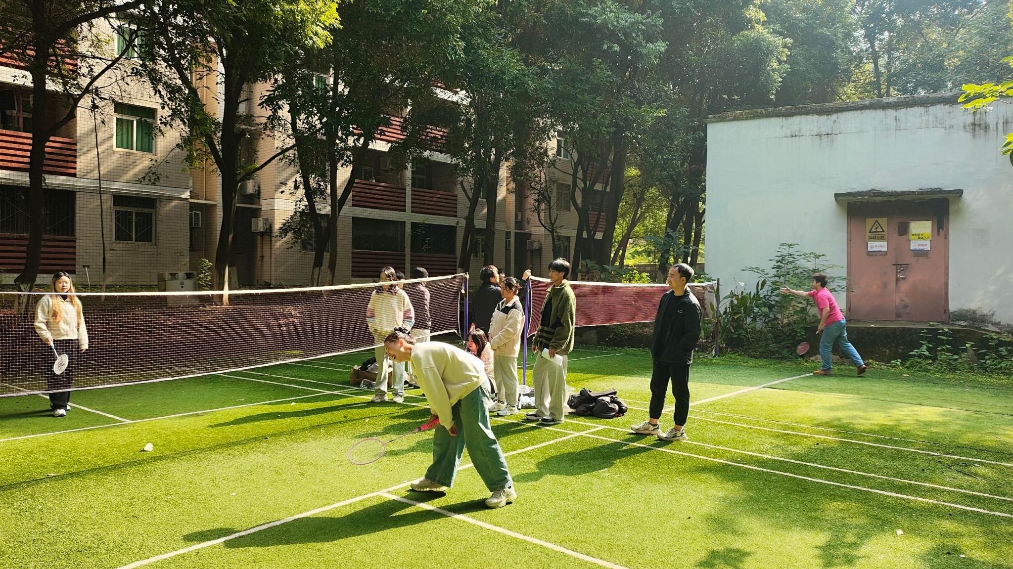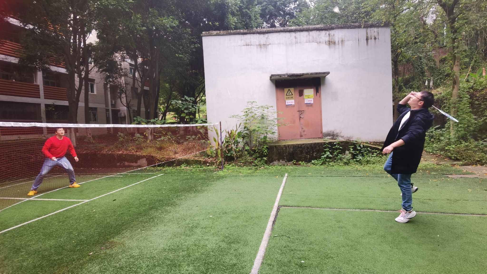 而老师组的比赛同样激情四溢,魅力无穷。老师们平日里在讲台上沉稳庄重,可一旦踏上这片羽毛球场,仿佛瞬间被注入了无限活力。他们身姿矫健,步伐灵活,每一次击球都充满力量与技巧。在单打比赛中,老师们各显神通,将自己精湛的球技展现得淋漓尽致。