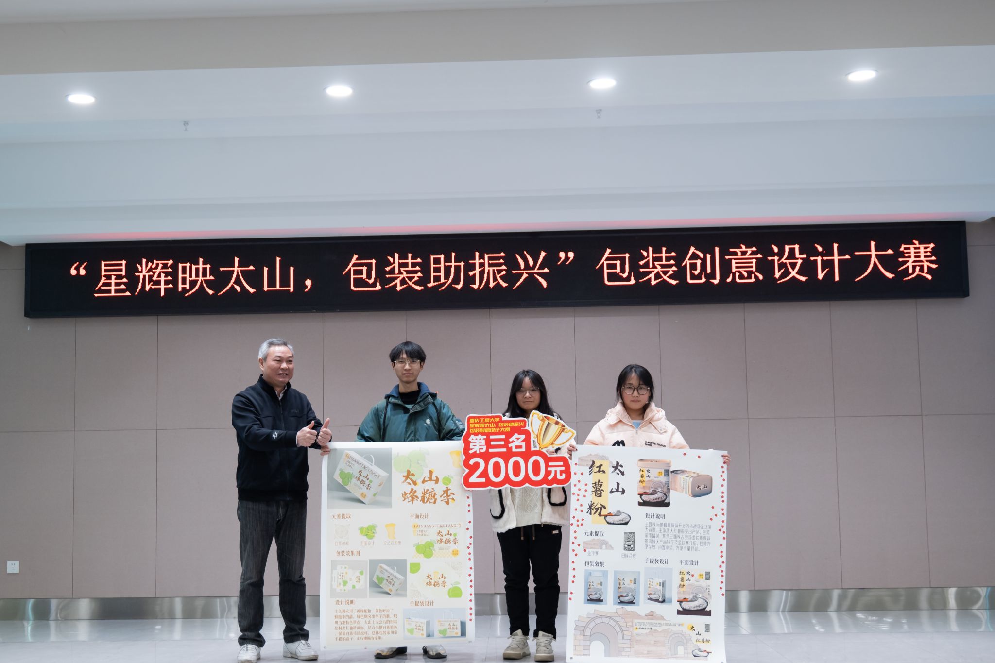“星辉映太山,包装助振兴”包装创意设计大赛在掌声和欢呼声中落幕,这场来源于实际需求的专业实践能力展示比赛,展示公司学子服务乡村振兴的青春力量。