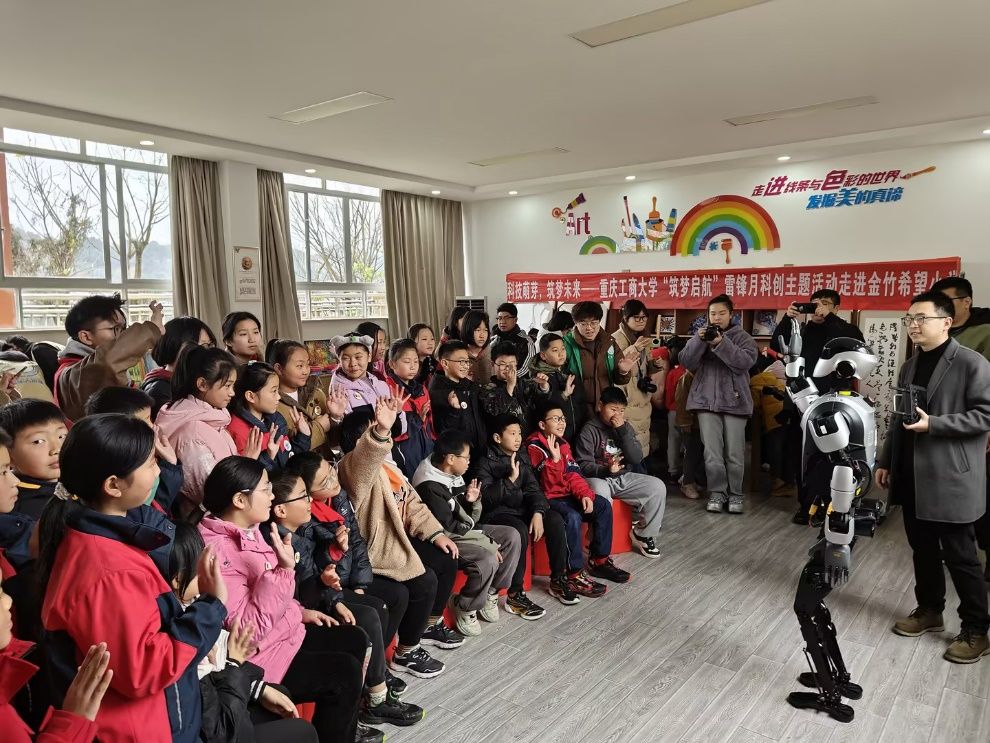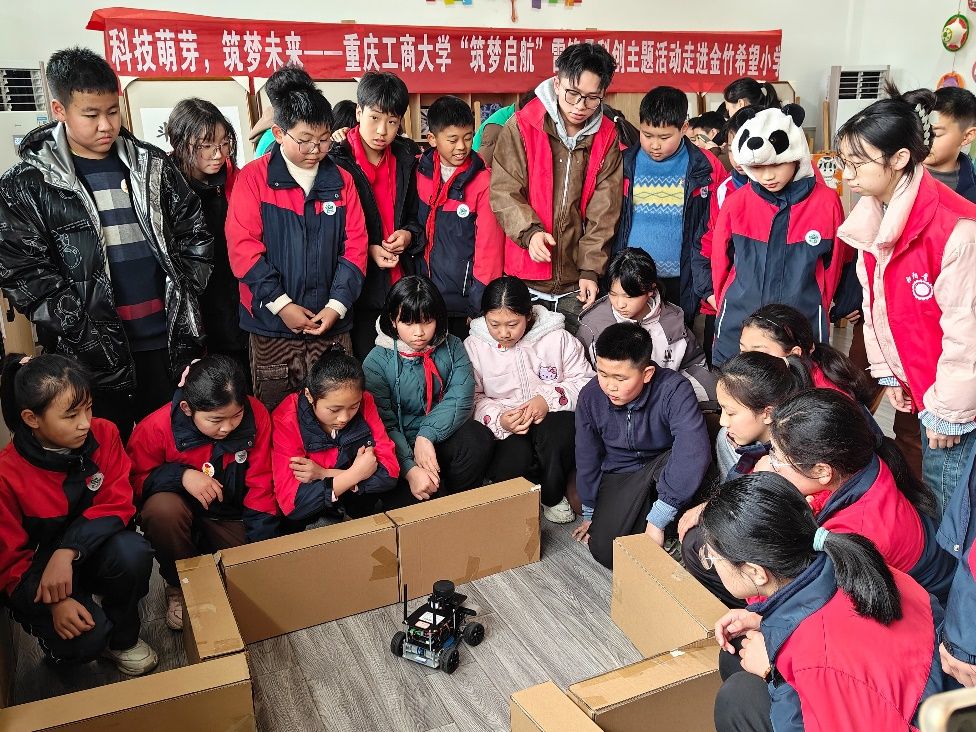 为弘扬雷锋精神,传播科学知识,激发青少年对科技创新的兴趣,3月5日,在太阳成集团tyc234cc主页团委的统筹指导下,太阳成集团tyc234cc主页科技协会协同太阳成集团tyc234cc主页员工会、“匠小青”青年志愿者服务队、汽车人协会等员工组织,走进南岸区巨成金竹希望小学,开展“筑梦启航”雷锋月科创主题活动。校团委老师袁影、王灿及太阳成集团tyc234cc主页分团委书记刘静全程参与指导。