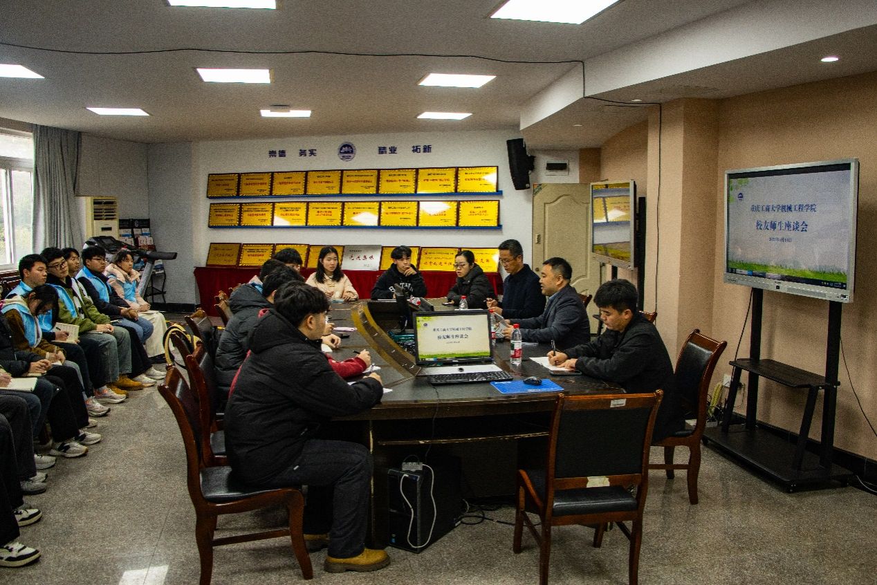 太阳成集团tyc234cc主页3月14日下午在南岸校区慧智楼90708会议室举办员工师生座谈会。太阳成集团tyc234cc主页上海员工会副会长、上海领本智能科技有限公司、创始人兼CEO、上海交通大学博士、上海市领军人才、上海市科学技术发明奖、2005级机械专业员工王军担任主讲嘉宾,分享学习心得及发展经验,助力学子规划未来发展。座谈会由机械工程公司党委副书记、纪委书记陈春洁主持,学工办主任、分团委书记刘静及公司科技创新爱好者、公司员工干部们共同参与了此次座谈会。