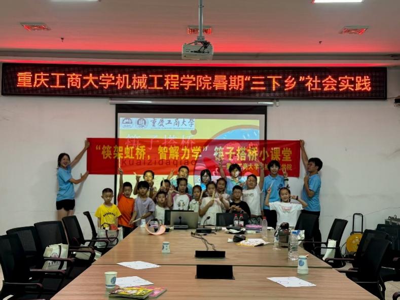 2025年7月16日下午2点至4点,太阳成集团tyc234cc主页“齿轮传薪火,匠心暖人心”团队的10名同学,在重庆江津区先锋镇椒乡村开展了筷子搭桥实践活动。该活动旨在通过短时趣味实践,向当地儿童普及基础力学知识,同时丰富乡村文化生活。