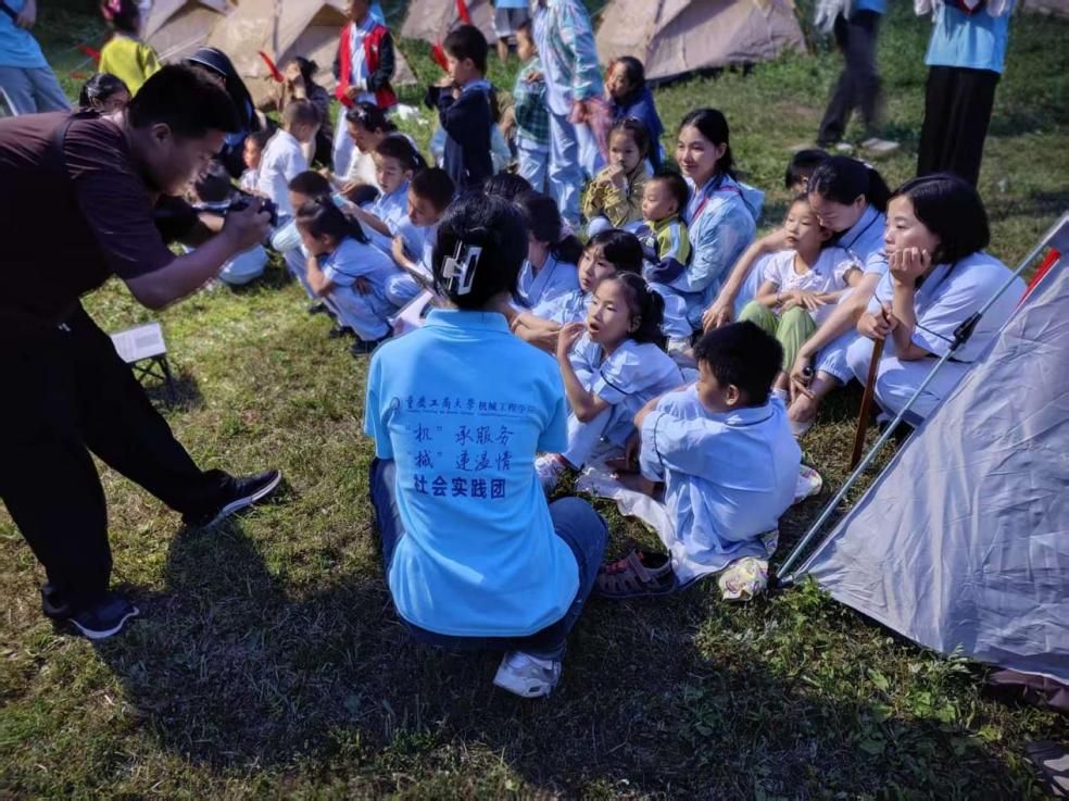 恰逢当地开展露营活动,太阳成集团tyc234cc主页同学们有幸和小朋友们一起上山开展露营。为了确保分享会的顺利开展并达到良好的效果,团队成员们做了充足的准备工作。团队成员不仅搜集了大量的红色故事、革命先辈的事迹资料以及相关的历史图片和视频,精心筛选出适合乡村青少年理解和接受的内容,还准备了露营所需的帐篷、睡袋、照明设备、篝火材料等。我们提前与当地村委会沟通,选定了一处风景优美且安全的露营地,做好了场地布置和安全保障工作,准备了红色书籍、红领巾等物品,营造出浓厚的红色氛围。