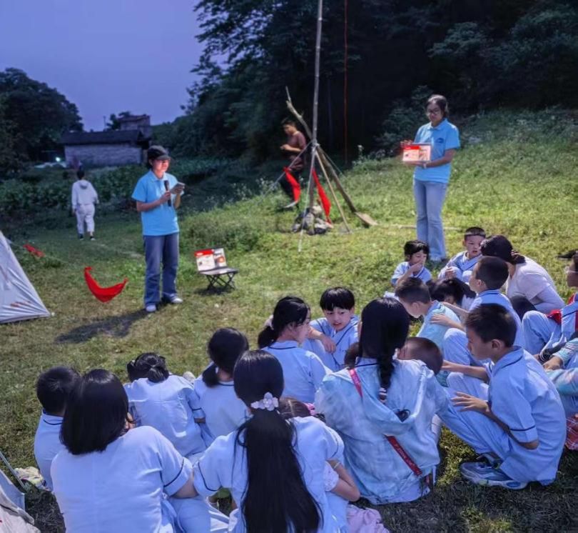 随后,孩子们认真观看了红色故事纪录片,不时举手提问,现场气氛热烈。“原来英雄就在我们身边,我以后也要像他们一样勇敢!”一位小朋友在听完故事后激动地说。孩子们在露营的独特氛围中,通过听红色故事、看红色电影、答红色问题、唱红色歌曲等多种形式,深入了解了红色历史和红色精神,爱国情怀和民族自豪感得到了极大的激发。