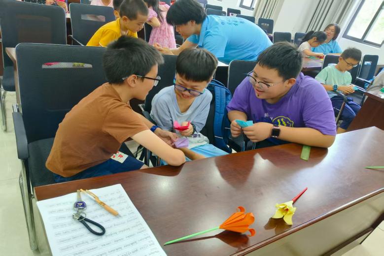 课堂上,团队成员以“基础折叠—花瓣塑形—创意装饰”为教学主线,用通俗语言分步讲解米字格折叠等关键技巧,对操作困难的儿童进行手把手指导。有的孩子在成员辅助下完成首个完美花瓣时,笑容灿烂动人,展现出艺术实践带来的成就感。这种“托管+教育”模式,既解决了家长的后顾之忧,又让孩子们在安全环境中感受折纸艺术的魅力。