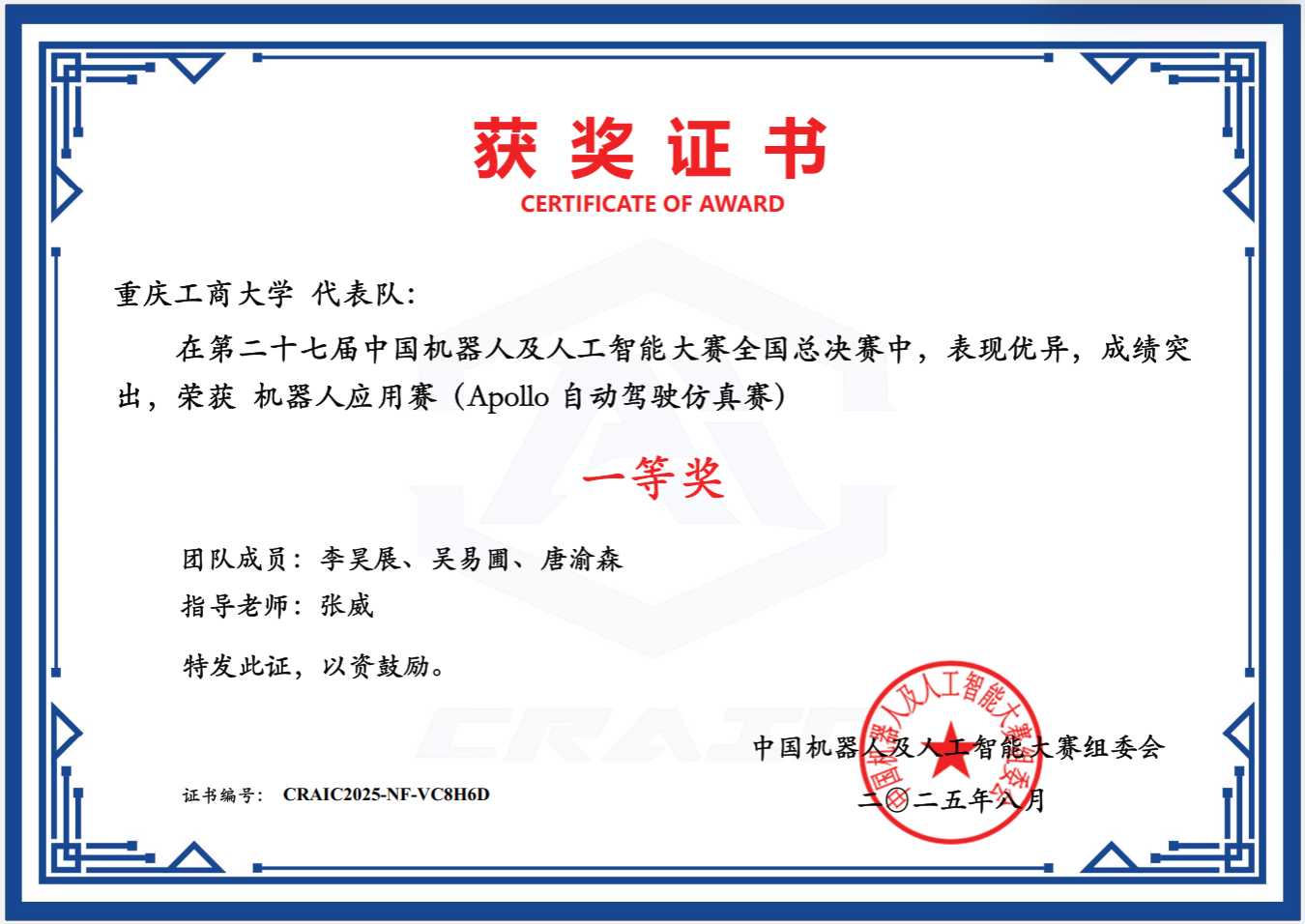本届赛制迎来重大革新,对参赛者的系统建模与底层调参能力提出了更为严苛的要求。面对全新的技术环境和极限的行驶场景挑战,更为严苛的建模与底层调参要求以及极限的行驶场景,公司“五公里车队”(成员:李昊展、唐渝森、吴易圃,指导教师:张威)迎难而上,展现出了过硬的攻坚克难及灵活应变能力,最终斩获佳绩。