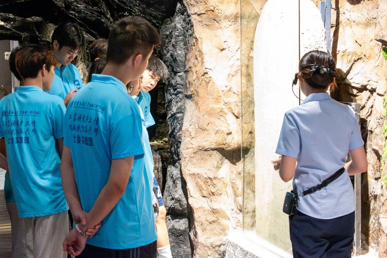 万盛博物馆内,丰富的展品和详实的史料生动地展现了万盛地区的多元文化。实践团成员首先被万盛独特的地质奇观所吸引,馆内展示的化石与地质模型,诉说着这片土地数亿年来的沧桑变迁。