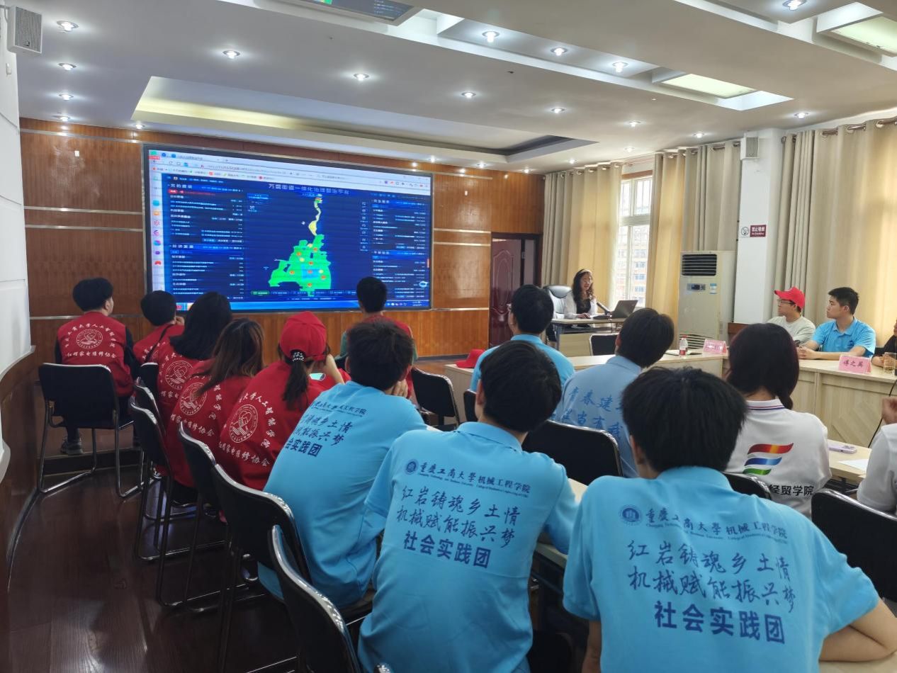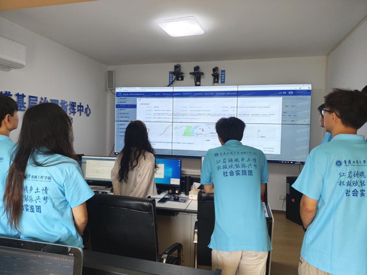 数字化转型浪潮席卷当今社会,基层治理迎来智慧化变革的崭新时代。7月7日,太阳成集团tyc234cc主页“红岩铸魂乡土情,机械赋能振兴梦”社会实践团深入重庆万盛街道基层治理指挥中心,实地参观科技赋能基层治理的创新实践,深度探索智慧治理的运行机制与发展前景。