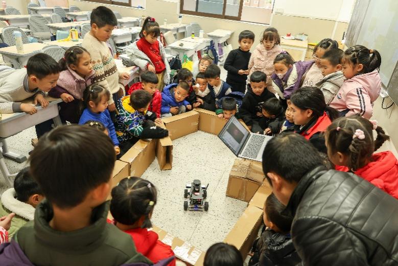 随后的智能ROS小车展演将现场气氛推向高潮。志愿者预先布置好行驶地图,启动小车后,其凭借精准的循迹功能平稳行进、灵活转向,引来同学们阵阵赞叹。大家围聚在地图周围,专注观察小车的一举一动。志愿者借此介绍了ROS小车的工作原理、循迹技术及机械工程相关常识,使员工直观感受到人工智能与机械技术的融合,埋下了探索科技的种子。