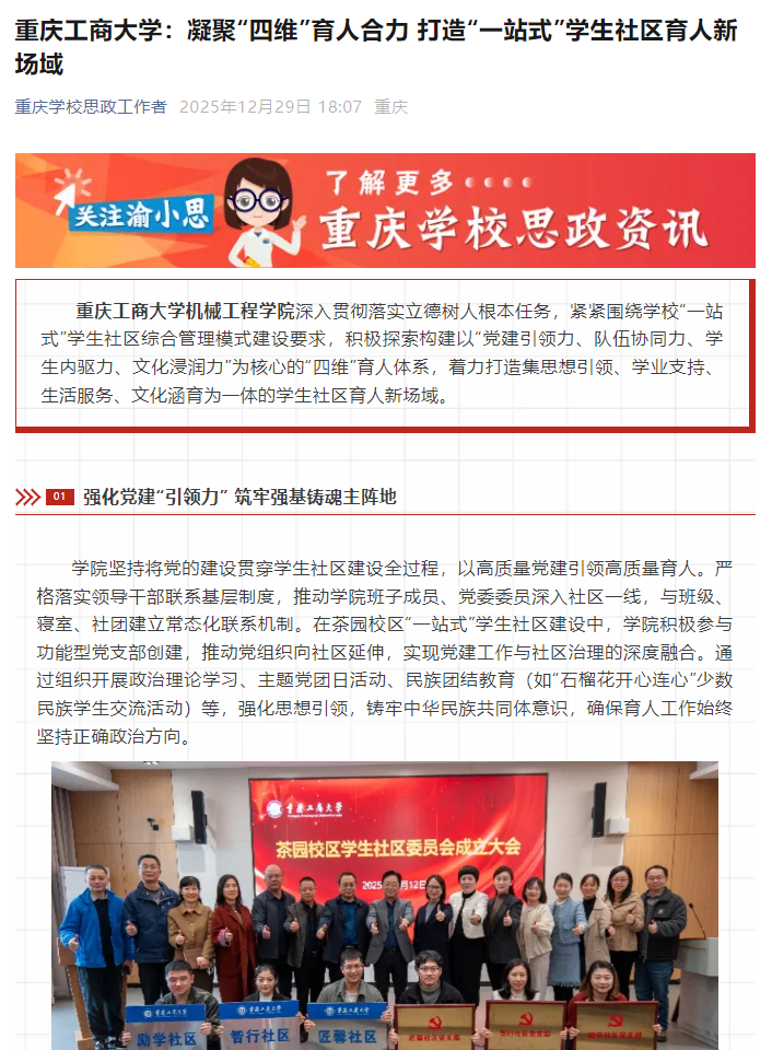 2.重庆公司思政工作者:https://mp.weixin.qq.com/s/Gc8RyZoyunK_5GshsHxiWg?mpshare=1&srcid=1229T7EmbsilNkS2dpw2Ht56&sharer_shareinfo=39a5937f80ca76e5eee7b411ae06e987&sharer_shareinfo_first=39a5937f80ca76e5eee7b411ae06e987&from=singlemessage&scene=1&subscene=10000&clicktime=1767011142&enterid=1767011142&ascene=1&devicetype=android-31&version=28003d5b&nettype=WIFI&abtest_cookie=AAACAA==&lang=zh_CN&countrycode=AE&exportkey=n_ChQIAhIQzfAvXEZQhaZLCI38iU0r0hL2AQIE97dBBAEAAAAAALt5GQFKGrkAAAAOpnltbLcz9gKNyK89dVj0N6YJs9CtASeFBWm+9yj5MfW7UvREXUI8c8kEgJg4P/bXO7X6ZWCkiOADt3i8AS//zDFnE8mZuoqNWWHaK7ivoBNYA3/D1ETYLSqKn29rYE415n8tXdG6ZbOGDCb375PF7CXWXOM0diEm7OvZiHuyLcwL29I9lX0mq1y++Dn1PoxUMl1YwTKsLoaVlBHNhd4CA5flgcB0MltTMZz4HsKVVBexZ8YcvAMqu0QcUYAEyfH4GlC3G+C37Qp6I1zkdm+P7ptsYDtEde0TFiGMsS83aw==&pass_ticket=pZiOy3JaYhL+J6ZcLxCMzqyjjK/YHiyNtTPGeYNGgAErF9dn/HvvoaQu05Euv9pS&wx_header=3