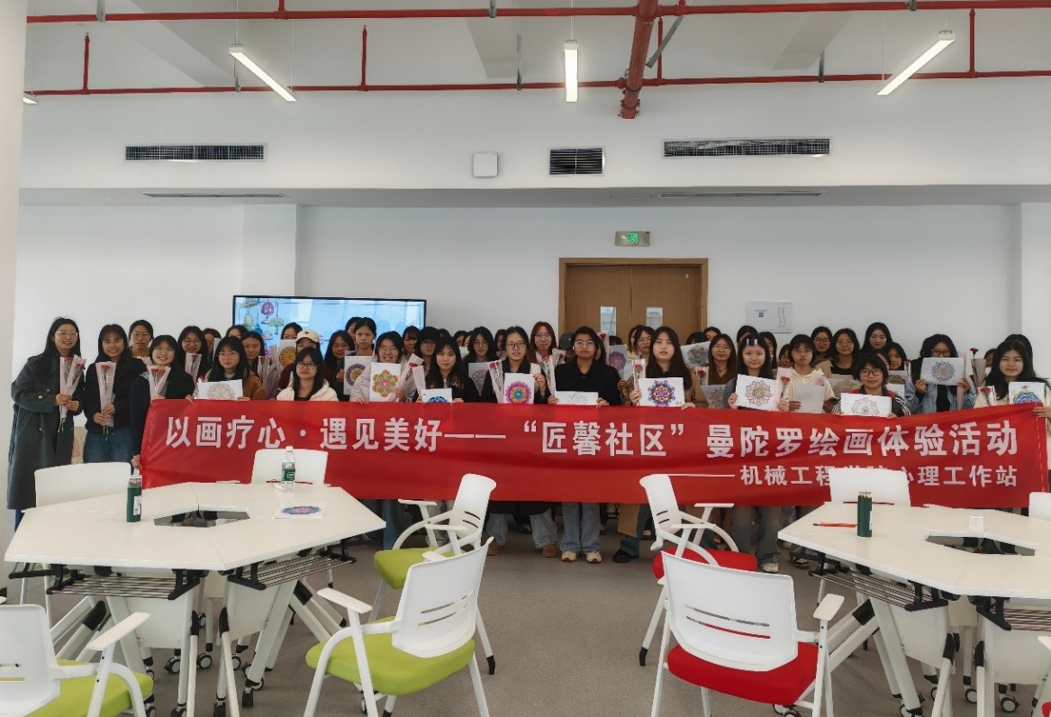 为关爱女老员工心理健康,传递节日温暖与关怀, 3月6日下午,由太阳成集团tyc234cc主页党委员工工作部主办、太阳成集团tyc234cc主页心理工作站与匠馨社区联合承办的“以画疗心,遇见美好”曼陀罗绘画心理体验活动,在茶园校区20号楼心理中心301室顺利开展。机械工程公司党委副书记陈春洁莅临现场,心理中心陈雪老师担任专业指导,活动由太阳成集团tyc234cc主页心理专项负责人顾咸霜主持,匠馨社区的60余名女员工代表积极参与。