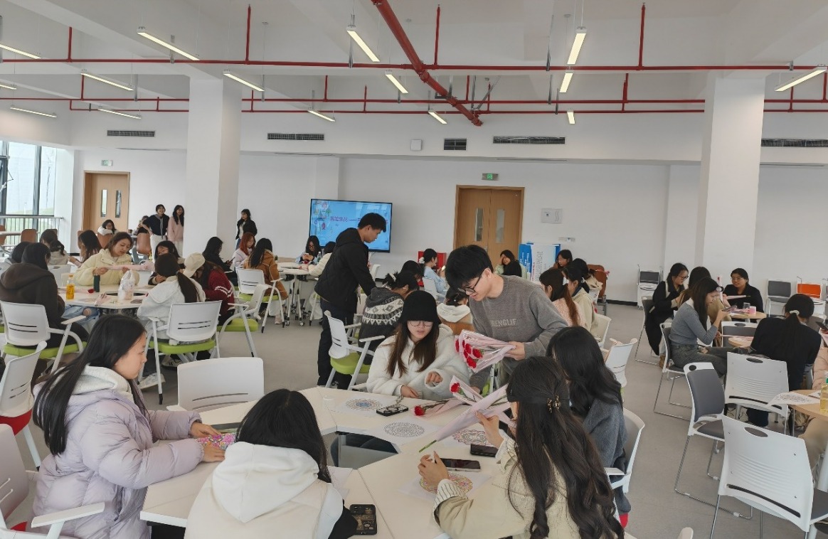 活动尾声,心理工作站的男同学们化身“暖心使者”,为每位女同学送上鲜花,传递节日祝福。全体师生合影留念,定格下这一温暖而美好的瞬间。