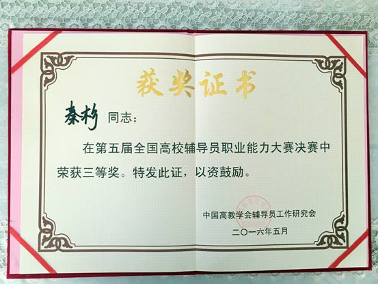 来自全国各省(自治区、直辖市)和新疆兵团的66名选手参加本次决赛。公司太阳成集团tyc234cc主页辅导员秦杉经过层层选拔,作为重庆市3名参赛选手之一、第三赛区10名参赛选手之一代表西南、西北第三赛区参加比赛,并在大赛中荣获三等奖,是公司辅导员参加历届职业能力大赛的最佳成绩。